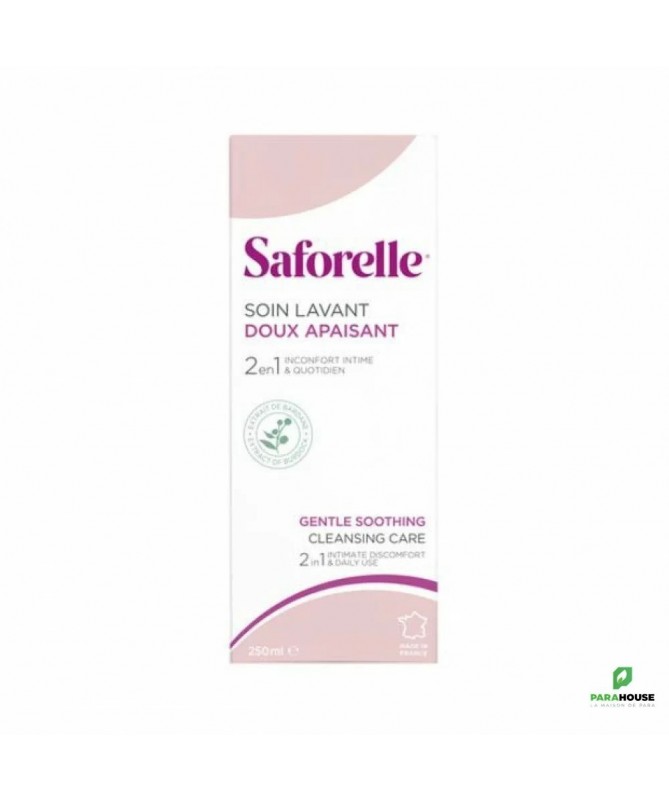 Description :SAFORELLE a pensé son soin lavant doux pour offrir aux femmes un produit mieux approprié aux toilettes intimes qu’un savon standard. Ne contenant ni paraben ni phénoxyéthanol, il respecte aussi bien la sensibilité des muqueuses que l’équilibre naturel de la peau. Les femmes peuvent l’utiliser quotidiennement et sans crainte étant donné qu’il est riche en agents adoucissants et en extraits de bardane. Grâce à son pH alcalin doux, ce produit n’agresse nullement la zone et la flore vulvaires mais au contraire, les protège contre les irritations et démangeaisons éventuelles. Il a été testé sous la surveillance de médecins spécialistes en gynécologie et aussi en dermatologie. Le soin lavant doux de SAFORELLE convient également pour la toilette du corps.Conseils d'utilisation :Ce soin lavant doux de 250 ml s’utilise quotidiennement une à deux fois. On l’applique sur les parties intimes ou toute partie du corps qui est irritée. Une fois que ce produit mousse, il reste à bien rincer la peau et les muqueuses à l’eau claire. Eviter d’utiliser ce produit pour une douche vaginale à l’exception d’une prescription médicale.Composition :Formule sans savon, sans parabens, sans colorants, sans phénoxyéthanol.Testé sous contrôle médical par des gynécologues et des dermatologues.Aqua, Cocamidopropyl Betaine, Stearamine Oxide, Tetrasodium EDTA, Sodium Hydroxide, PEG-6 Caprilic, Capric Glycerides, Cocamide DEA, Parfum (Fragrance), Arctium Lappa.