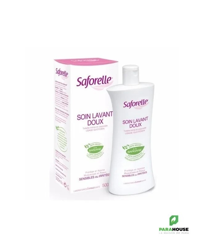 Description :SAFORELLE a pensé son soin lavant doux pour offrir aux femmes un produit mieux approprié aux toilettes intimes qu’un savon standard. Ne contenant ni paraben ni phénoxyéthanol, il respecte aussi bien la sensibilité des muqueuses que l’équilibre naturel de la peau. Les femmes peuvent l’utiliser quotidiennement et sans crainte étant donné qu’il est riche en agents adoucissants et en extraits de bardane. Grâce à son pH alcalin doux, ce produit n’agresse nullement la zone et la flore vulvaires mais au contraire, les protège contre les irritations et démangeaisons éventuelles. Il a été testé sous la surveillance de médecins spécialistes en gynécologie et aussi en dermatologie. Le soin lavant doux de SAFORELLE convient également pour la toilette du corps.Conseils d'utilisation :Ce soin lavant doux de 500 ml s’utilise quotidiennement une à deux fois. On l’applique sur les parties intimes ou toute partie du corps qui est irritée. Une fois que ce produit mousse, il reste à bien rincer la peau et les muqueuses à l’eau claire. Eviter d’utiliser ce produit pour une douche vaginale à l’exception d’une prescription médicale.Composition :Formule sans savon, sans parabens, sans colorants, sans phénoxyéthanol.Testé sous contrôle médical par des gynécologues et des dermatologues.Aqua, Cocamidopropyl Betaine, Stearamine Oxide, Tetrasodium EDTA, Sodium Hydroxide, PEG-6 Caprilic, Capric Glycerides, Cocamide DEA, Parfum (Fragrance), Arctium Lappa.