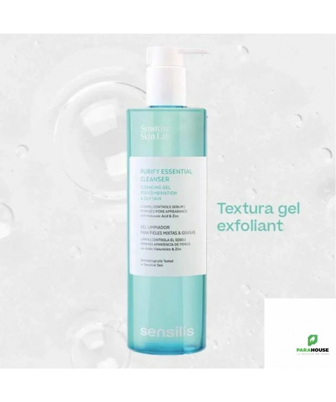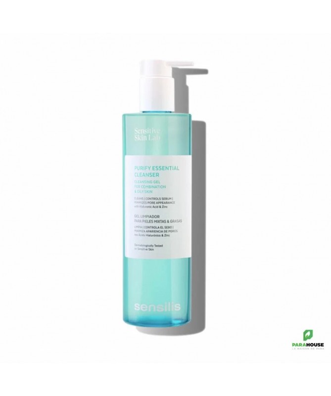SENSILIS PURIFY ESSENTIAL CLEANSER 400ML SENSILIS PURIFY ESSENTIAL CLEANSER est un gel nettoyant purifiant qui, grâce au zinc et à l’extrait de lin, élimine les impuretés de la peau, minimise l’apparence des pores et normalise la sécrétion sébacée sans produire de poussée et limitant la prolifération bactérienne. SENSILIS PURIFY ESSENTIAL CLEANSER est particulièrement indiqué pour les peaux mixtes ou grasses, présentant des impuretés ou dont les pores sont très visibles et/ou obstrués. Composition : Aqua (Water); Cocamidopropyl Betaine; Sodium Cocoamphoacetate; Sodium Lauroyl Sarcosinate; Glycerin; Ceteareth-60 Myristyl Glycol; Sodium Chloride; Sodium Hyaluronate; Barosma; Betulina Leaf Extract; Linum Usitatissimum (Linseed) Seed Extract; Zinc PCA; Panthenol; Lactic Acid; Hydroxyacetophenone; Glyceryl Oleate; Butylene Glycol; Coco-Glucoside; 1,2-Hexanediol; Tetrasodium Glutamate Diacetate; Sodium Hydroxide; Citric Acid; Parfum (Fragrance) Conseils d'utilisation : Appliquer SENSILIS PURIFY ESSENTIAL CLEANSER sur le visage légèrement humide. Masser en profondeur en faisant des mouvements circulaires pour que le gel émulsionne et pénètre en profondeur. Sécher la peau en la tapotant doucement à l’aide d’une serviette pour ne pas irriter la peau.