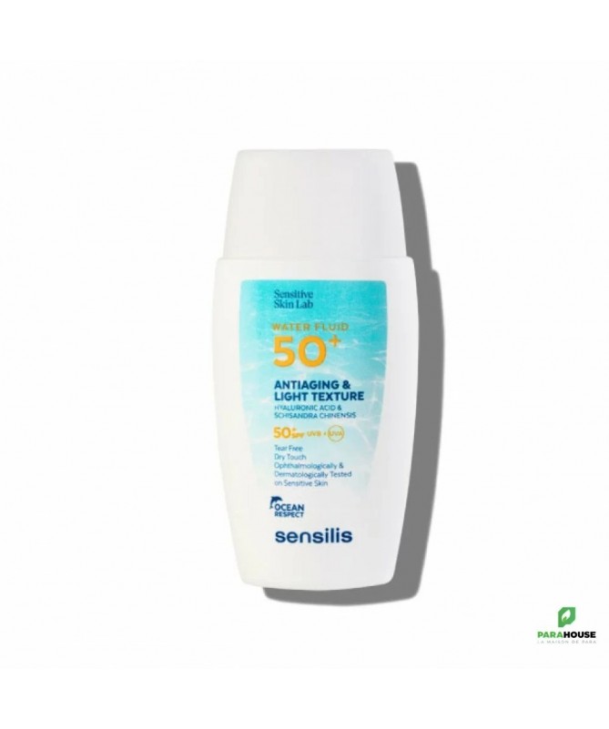 SENSILIS Water Fluid SPF50+ 40ML SENSILIS Water Fluid SPF50 est une très haute protection visage ultra-légère à base d'eau qui fond sur la peau et procure une délicate sensation de fraîcheur au fini invisible, soyeux et mat. Formulé avec une combinaison de crèmes solaires avec protection UVB et UVA, d'acide hyaluronique, pour son pouvoir hydratant, d'allantoïne et de Schisandra Chinesis, pour son action calmante, et de vitamine E, pour son action antioxydante. SENSILIS Water Fluid : Protège la peau du photovieillissement dès la première application grâce à son SPF50+. Hydrate la peau de 17% en 28 jours. Réduit le TEWL de 14,8% après la première application. Apaise la peau en 5 minutes. Action antioxydante. Composition : Aqua (Eau) ; Méthoxycinnamate d'éthylhexyle ; Butylèneglycol; Propylène glycol; Butylméthoxydibenzoylméthane ; Salicylate d'éthylhexyle ; Le polyméthacrylate de méthyle; Bis-Éthylhexyloxyphénol Méthoxyphényl Triazine ; Diméthicone ; Éthylhexyltriazone ; Silice; Polyester-7 ; Glycérine; Diheptanoate de néopentylglycol ; La cellulose microcristalline; allantoïne ; Acétate de tocophérol ; Acrylates/polymère croisé d'acrylate d'alkyle en C10-30 ; EDTA disodique; Extrait de fruit de Schisandra chinensis ; Hyaluronate de sodium; PEG-8 ; La gomme de cellulose; Hydroxyde de sodium; Tocophérol ; Hydroxyde d'aluminium ; Extrait d'Artemisia ubelliformis ; Extrait de feuille de Buddleja Davidii ; Extrait de feuille de Peucedanum ostruthium ; Diglycérine ; Lauroylglutamate de sodium ; Phénoxyéthanol; Éthylhexylglycérine ; Palmitate d'ascorbyle ; Lysine; Chlorure de magnesium; Acide ascorbique; Acide citrique; Extrait d'écorce/bourgeon de Pinus pinaster ; Benzoate de sodium; Sorbate de potassium; CI 77891 (dioxyde de titane) ; BHT; Parfum (Parfum) Formule Ocean Respect respectueuse de votre peau et de la planète. Hypoallergénique. Non comédogène. Sans déchirure. Résistant à l'eau et à la sueur. Testé dermatologiquement sur peau sensible. Conseils d'utilisation : Il est recommandé de Verser quelques gouttes et l’appliquer depuis la moitié du visage jusqu’au menton, de l’intérieur vers l’extérieur, par des tapotements. Mettre SENSILIS Water Fluid sur le front et l’étaler de bas en haut. Appliquer sur les zones souhaitées au moins 30 minutes avant l’exposition au soleil. Appliquer fréquemment et en quantités appropriées. Limiter le temps d'exposition au soleil et éviter les heures à forte intensité solaire. Water Fluid 50+ s'adresse à tous les types de peau, en particulier les peaux de phototypes I et II.