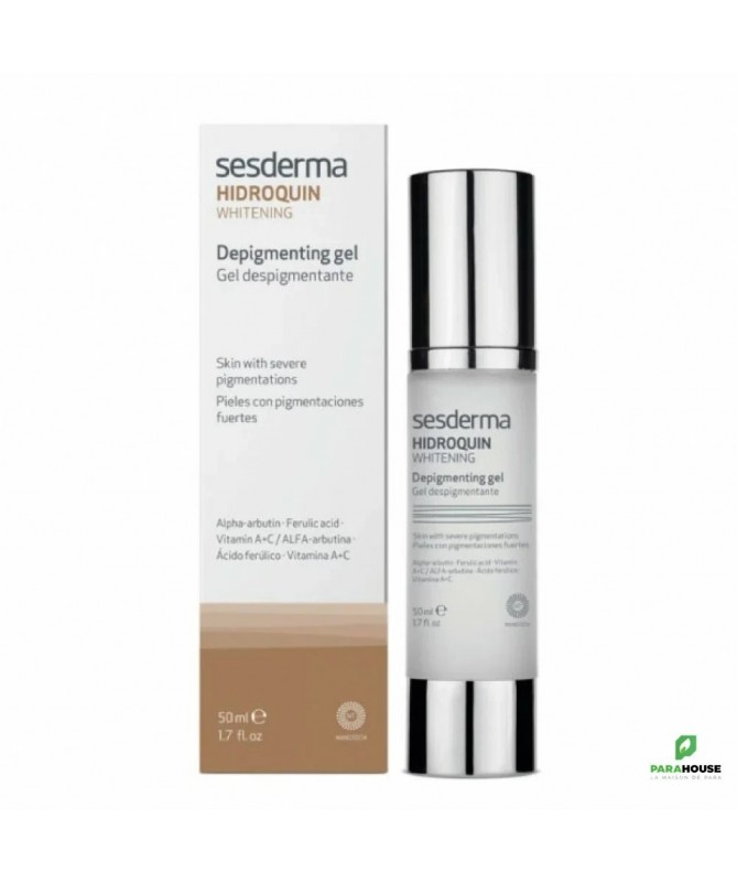 SESDERMA HIDROQUIN BLANCHISSANT GEL 50ML SESDERMA HIDROQUIN GEL est destiné pour prévenir et traiter les taches cutanées très fortes. Il est recommandé pour tout type de peau. C'est une association de principes actifs dépigmentants à action synergique. Application ciblée. La technologie de SESDERMA HIDROQUIN GEL , qui consiste à véhiculer au travers de nanosomes, permet aux actifs d’entrer dans la peau à un niveau plus profond et de se libérer graduellement. Votre teint est homogénéisé et les pigmentations cutanées diminuent. Composition : Rétinol, vitamine C, a rbutine, acide férulique, niacinamide Conseils d'utilisation : Il est indiqué de l'appliquer 1 - 2 fois par jour tout en réalisant un léger massage jusqu'à une parfaite pénétration. Il est conseillé d'utiliser un protecteur solaire d'une façon quotidienne pour la prévention.