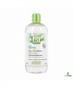SO BIO HYDRA ALOE VERA EAU MICELLAIRE PURIFIANTE 500ML - POUR LES PEAUX MIXTES À GRASSES - SO BIO HYDRA ALOE VERA EAU MICELLAIRE PURIFIANTE est un nettoyant révolutionnaire simple et efficace pour un usage quotidien qui agit efficacement et en douceur. Elle élimine également l’excès de sébum et tonifie la peau. La peau est nette et fraîche, parfaitement démaquillée, visiblement plus saine. Formulé avec: Pur jus d’aloe vera bio qui hydrate* la peau Citrus reconnu pour ses propriétés purifiantes et astringentes Zinc purifiant , agent nettoyant d’origine végétale doux et non irritant. EFFICACITE TESTEE : Le produit élimine les impuretés : 85% Elimine l'excès de sébum : 82% La peau est parfaitement démaquillée : 91% La peau est nette : 85% La peau est hydratée : 65% Les pores sont resserrés : 61% La peau est rééquilibrée : 71% Composition : Aqua (Water)Hamamelis Virginiana (Witch Hazel) Water [1]GlycerinPolyglyceryl-4-CaprateAloe Barbadensis Leaf Juice [1]Sodium LevulinateBenzyl AlcoholParfum (Fragrance)Zinc PcaSodium BenzoateAloe Barbadensis (Aloe) Leaf Juice Powder [1]LimoneneLactic AcidCitrus Aurantifolia (Lime) Oil [1]LinaloolCitric AcidCitronellol Démaquille et nettoie le visage Elimine l’excès de sébum 0% silicone, parfum de synthèse Testé sous contrôle dermatologique. Conseils d'utilisation : Il est conseille : A l’aide d’un coton, d'applique l’eau micellaire purifiante matin et soir. S’utilise sans rinçage. Votre peau est prête pour l’application d’un soin Hydra Aloe Vera.