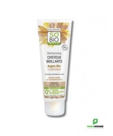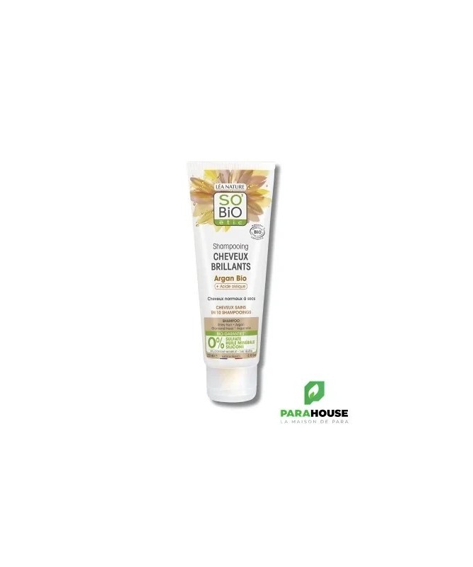 SO'BIO ÉTIC SHAMPOOING CHEVEUX BRILLANTS ARGAN 250MLOffrez à vos cheveux un véritable bain de lumière !Enrichi en huile d’argan bio et acide oléique, ce shampooing nourrit en profondeur les cheveux normaux à secs, même les plus ternes. Résultat : des cheveux plus souples, éclatants et brillants comme de la soie.- Nourrit intensément- Rend les cheveux brillants et souples- Cheveux visiblement plus sains en 10 shampooings- Sans sulfate**, sans paraben, sans siliconeConseils d'utilisationAppliquer sur cheveux mouillés, faire mousser en massant le cuir chevelu, puis rincer soigneusement. Pour un résultat optimal, compléter avec l’après-shampooing Cheveux Brillants SO’BiO étic®.Précautions :Ne pas avaler. Éviter le contact avec les yeux. Tenir hors de portée des enfants. Ne pas jeter dans la nature.CompositionAqua/Water/Eau, Decyl Glucoside, Cocamidopropyl Betaine, Cocos Nucifera (Coconut) Oil*, Glyceryl Stearate, Sodium Cocoyl Glutamate, Argania Spinosa Kernel Oil*, Benzyl Alcohol, Xanthan Gum, Sodium Chloride, Olea Europaea (Olive Fruit) Oil*, Lactic Acid, Glycerin, Guar Hydroxypropyltrimonium Chloride, Parfum (Fragrance), Aloe Barbadensis Leaf Juice Powder*, Linalool, Limonene, Caesalpina Spinosa Gum, Tocopherol, Potassium Sorbate, Sodium Benzoate, Helianthus Annuus (Sunflower) Seed Oil, Sodium Hydroxide*Ingrédients issus de l’agriculture biologique**Sans tensioactifs sulfatés