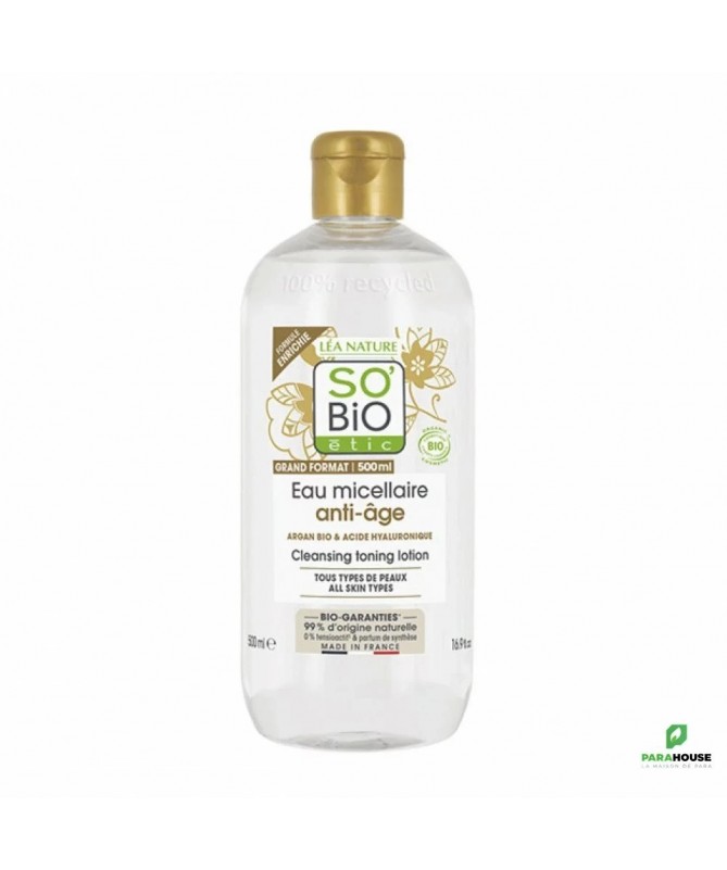 SO BIO PRECIEUX ARGAN EAU MICELLAIRE ANTI AGE SO BIO PRECIEUX ARGAN EAU MICELLAIRE ANTI AGE à l'extrait d'argan et en acide hyaluronique nettoie et démaquille votre visage tout en douceur, donc votre peau sera plus souple et tonifiée . Elle est prête pour l'application de votre soin quotidien. L'eau micellaire PRÉCIEUX ARGAN est Formulée avec : Extrait d'argan bio reconnu pour son pouvoir adoucissant et minéralisant sur la peau. Acide hyaluronique un agent hydratant assure la souplesse et la fermeté de la peau. Hydrolat de camomille bio reconnue pour ses vertus apaisante et régénérante. Glycérine végétale puissant agent hydratant* et protecteur. Agent nettoyant d'origine végétale doux et non irritant. Hydratation des couches supérieures de l'épiderme. Testé sous contrôle dermatologique. Compostion : Aqua (Water), Anthemis Nobilis Flower Water*, Glycerin, Sodium Levulinate, Benzyl Alcohol, Caprylyl/Capryl Glucoside, Sodium Benzoate, Parfum (Fragrance), Argania Spinosa Kernel Extract*, Sodium Hydroxide, Lactic Acid, Sodium Hyaluronate, Linalool, Potassium Sorbate, Geraniol * ingrédients issus de l'agriculture biologique 99% du total des ingrédients sont d'origine naturelle. 11% du total des ingrédients sont issus de l'agriculture biologique. Conseils d'utilisation: Appliquez SO BIO PRECIEUX ARGAN EAU MICELLAIRE ANTI AGE sur l'ensemble du visage et du cou à l'aide d'un coton. NB: Ne nécessite pas de rinçage.