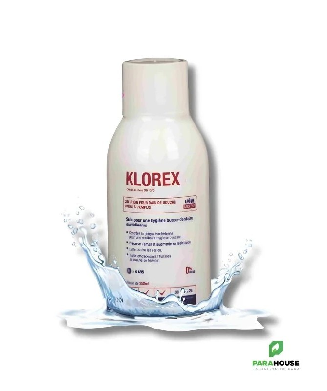 Bain de Bouche KlorexCe bain de bouche aide à contrôler la plaque bactérienne pour une hygiène bucco-dentaire optimale.Il préserve l’émail des dents, augmente sa résistance et lutte efficacement contre les caries.Il traite également l’halitose (mauvaise haleine) pour une sensation de fraîcheur durable.Pour de meilleurs résultats, utilisez-le en complément du dentifrice Klorex.Composition :Chlorhexidine DG : 0,06 gCPC : 0,05 gFluor : 226 ppm
