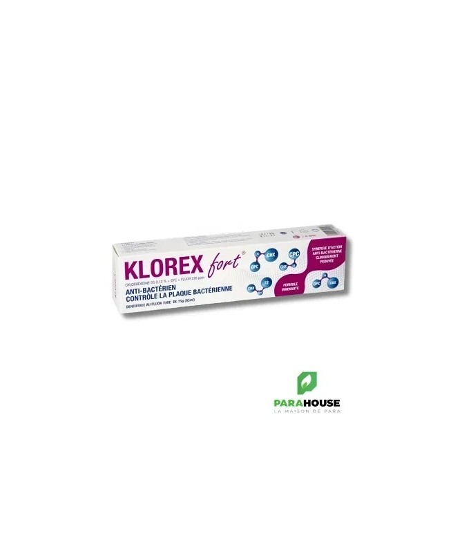 Indications :Formation excessive de plaque bactérienneSoins intensifs des gencives délicates ou en cas de gingivitesPrévention de la carie dentaireMauvaise haleineEn relais au traitement Korex Fort et pour le maintien d'une hygiène bucco-dentaire quotidienne, utilisez Klorex bain de bouche.Contenance :Tube de 75g (65ml)Conseils d'utilisation :Brossez-vous les dents pendant au moins 2 minutes, 3 fois par jourNe pas avaler, recracher et se rincer la bouche après chaque brossageÀ partir de 6 ansComposition :Chlorhexidine DG 0,12%CPC 0,05gExcipient QSP 100mlFluor 226 ppm F