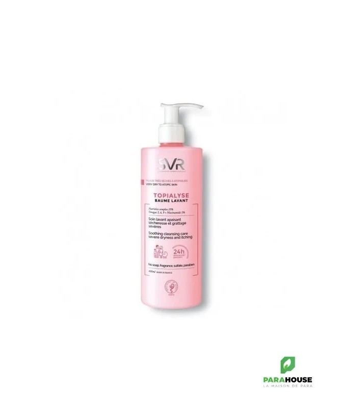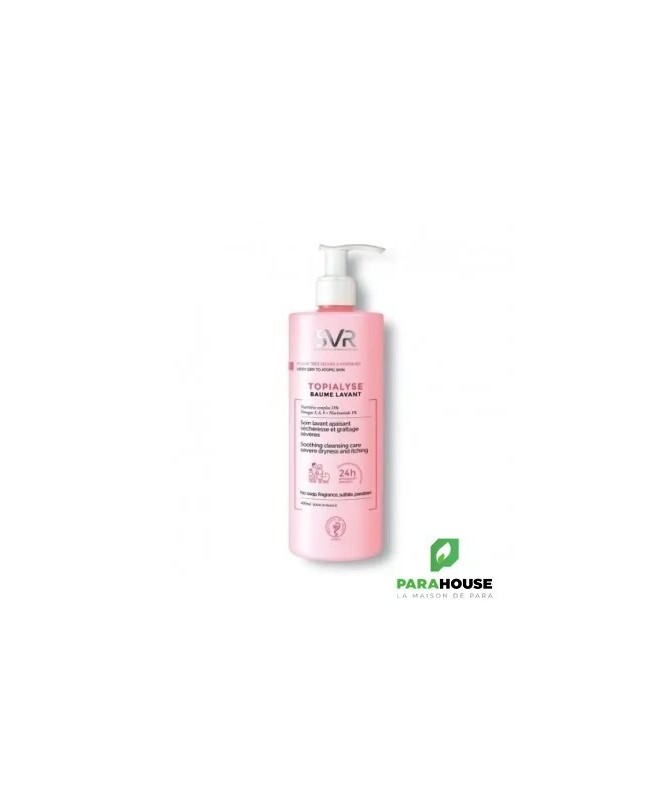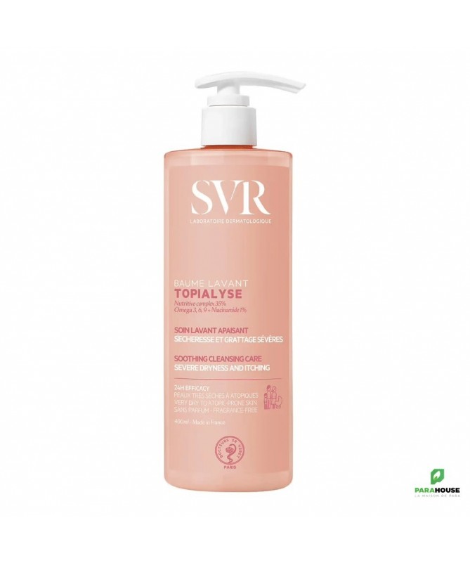 Découvrez leSVR TOPIALYSE BAUME LAVANT 400ML, un gel lavant apaisant spécialement formulé pour les peaux sèches et sensibles. Ce nettoyant doux offre une expérience de douche agréable tout en respectant l'équilibre naturel de votre peau. Enrichi en agents hydratants, le baume lavant SVR Topialyse nettoie en profondeur sans agresser la barrière cutanée. Sa texture crémeuse et onctueuse laisse votre peau douce et confortable, réduisant les sensations de tiraillement et d'irritation.Idéal pour toute la famille, ce gel lavant est parfait pour les peaux sujettes à la sécheresse et aux inconforts. Sa formule hypoallergénique a été testée sous contrôle dermatologique, assurant une tolérance optimale même sur les peaux les plus sensibles. Avec leSVR TOPIALYSE BAUME 400ML, vous pouvez dire adieu aux nettoyants agressifs et bonjour à une routine de soin apaisante et hydratante. Offrez à votre peau le meilleur des soins avec ce nettoyant doux, qui allie efficacité et douceur pour un quotidien serein.Composition :Aqua (Purified Water), Glycerin, Sodium C14-16 Olefin Sulfonate, Coco-Betaine, Coco-glucoside, Acrylates/c10-30 Alkyl Acrylate Crosspolymer, Niacinamide, Alpha-Glucan Oligosaccharide Saccharide Isomerate, Tocopherol, Tocopheryl Acetate, 1.2-Hexanediol Caprylyl Glycol Citric, Acid, Cocos Nucifera (Coconut) Oil, Glyceryl Oleate, Gossypium Herbaceum (Coton) Seed Oil, Hydrogenated Palm Glycerides Citrate, pentylene Glycol, Sodium Citrate, Sodium Hydroxide, Styrene / Acrylates Copolymer.Haute tolérance :0% savon, sulfate, parfum, conservateur, colorant et paraben.Hypoallergénique, pH physiologique.Testée sous contrôle dermatologique, ophtalmologique, gynécologique et pédiatrique.Convient aux cheveux et au corps du bébé. Ne pique pas les yeux.