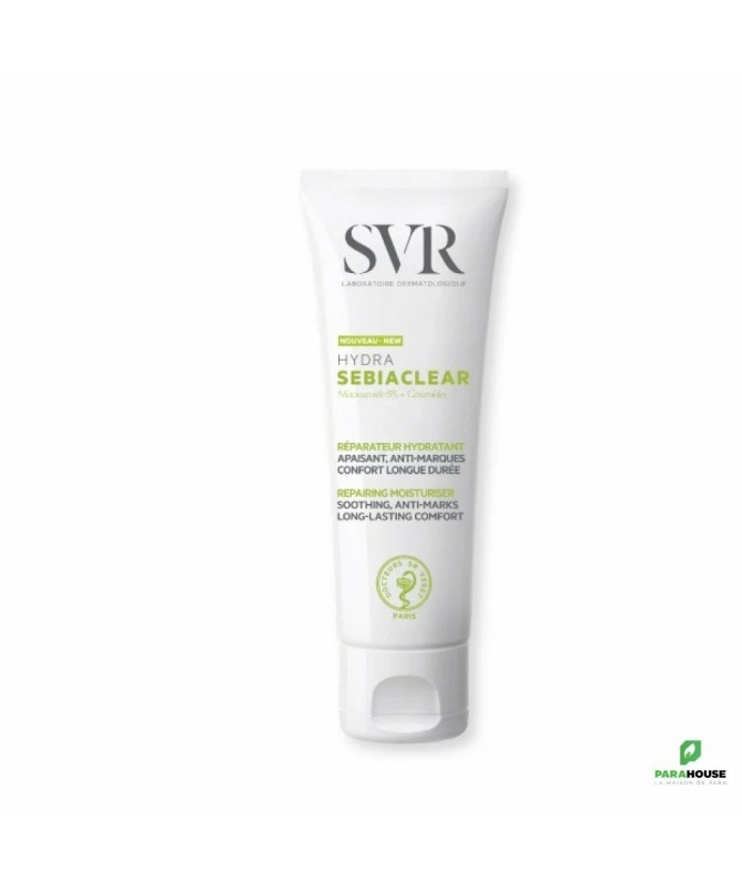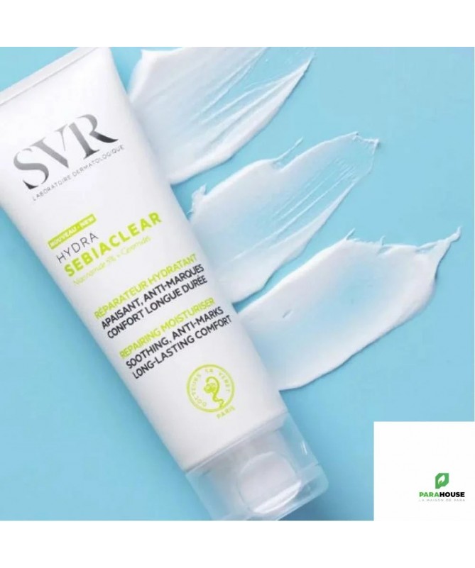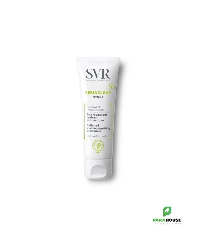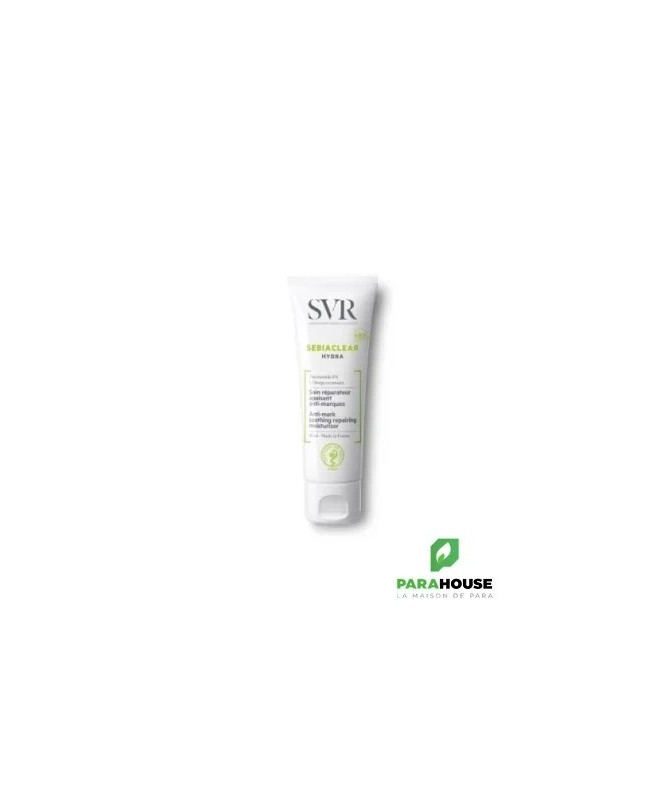 SVR SEBIACLEAR HYDRA Soin réparateur apaisant anti-marques SVR SEBIACLEAR HYDRA est le 1er soin réparateur apaisant, anti-marques et qui offre une hydratation 48h , spécifiquement développé pour les peaux à tendance acnéique sous traitement desséchant. SVR SEBIACLEAR HYDRA avec sa texture micro-aérée inédite permet une efficacité apaisante et réparatrice renforcée combinée à une action anti-marques rouges et brunes : un véritable allié au quotidien. La peau est matifiée pour toute la journée. Composition : INGREDIENTS : AQUA/WATER/EAU, PRUNUS AMYGDALUS DULCIS (SWEET ALMOND) OIL, ORBIGNYA OLEIFERA SEED OIL, NIACINAMIDE, DIMETHICONE, GLYCERYL STEARATE CITRATE, SILICA, GLYCERIN, GLYCERYL GLUCOSIDE, PENTYLENE GLYCOL, CETEARYL ALCOHOL, SODIUM POLYACRYLATE STARCH, PARFUM (FRAGRANCE), OPHIOPOGON JAPONICUS ROOT EXTRACT, 1,2-HEXANEDIOL, CAPRYLYL GLYCOL, MALTODEXTRIN, HYDROLYZED HYALURONIC ACID, PENTAERYTHRITYL TETRA-DI-T-BUTYL HYDROXYHYDROCINNAMATE, GLYCOSPHINGOLIPIDS, GLYCOLIPIDS Conseil d'utilisation : Il est indiqué d'apliquer matin et/ou soir sur peau nettoyée. SEBIACLEAR Hydra est une excellente base de maquillage.