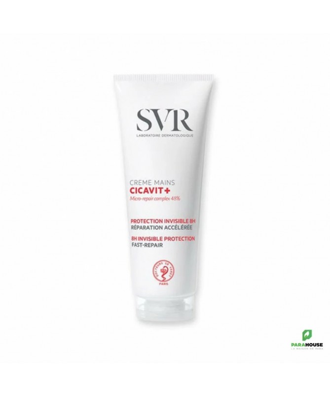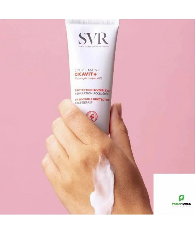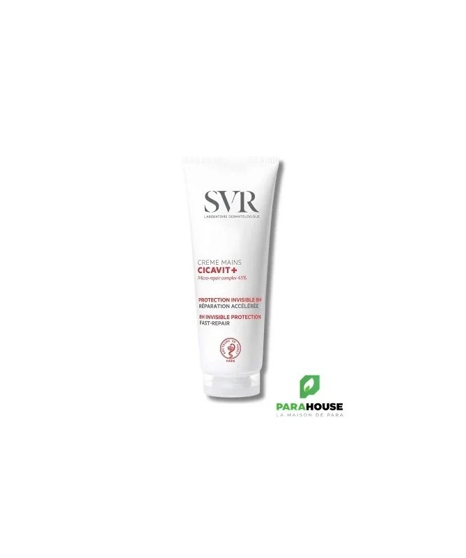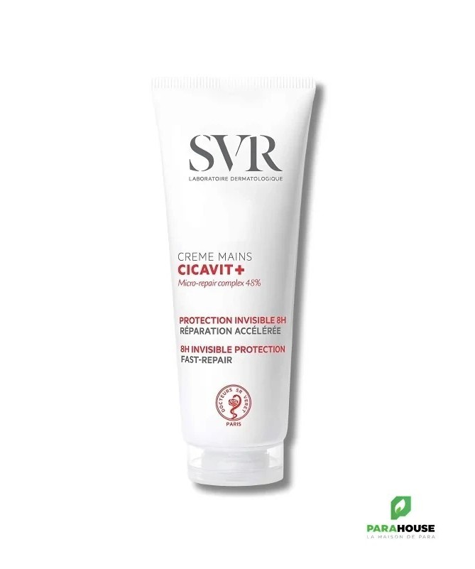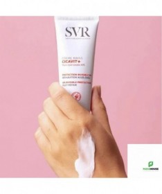 SVR CICAVIT+ Crème Mains 75Gr SVR CICAVIT+ Crème Mains assure 8 heures de protection invisible contre les agents extérieurs, elle contribue particulièrement à accélérer la réparation des mains irritées. Avec sa texture onctueuse, elle laisse la peau veloutée et parfaitement hydratée pour longtemps. CICAVIT Creme Mains aide à protéger vos mains des agressions quotidiennes, telles que le changement de température, le stress, les tâches manuelles et ménagères. La formule a été développée pour répondre aux besoins des personnes exerçant des activités manuelles. Vous pouvez désormais travailler tout en protégeant vos mains. svr crème mains cicavit+ est idéal pour combattre les effets desséchants et irritants de la dermatite sur les mains gercées. Il hydrate et renforce la fonction de barrière naturelle de votre peau grace aux Polysaccharide riche en rhamnose, sucre prébiotique, huile et beurre végétaux. EFFICACITÉ PROUVÉE SOUS CONTRÔLE DERMATOLOGIQUE : 8H d’hydratation(1) -43% de sècheresse(2) +136% de douceur(2) 100% Les mains sont immédiatement apaisées(3) 100% le produit crée un film barrière invisible(3) 95% Les mains sont durablement réparées(3) Composition : LAB20.21/B.48 - INGREDIENTS : AQUA/WATER/EAU, GLYCERIN, COCOS NUCIFERA (COCONUT) OIL, DIGLYCERIN, VEGETABLE OIL, C12-16 ALCOHOLS, GLYCOL PALMITATE, CETYL PALMITATE, GLYCERYL STEARATE CITRATE, HELIANTHUS ANNUUS (SUNFLOWER) SEED WAX, SILICA, PENTYLENE GLYCOL, 1,2-HEXANEDIOL, SODIUM POLYACRYLATE, HYDROGENATED LECITHIN, PALMITIC ACID, ALPHA-GLUCAN OLIGOSACCHARIDE, PROPANEDIOL, CAPRYLYL GLYCOL, PENTAERYTHRITYL TETRA-DI-T-BUTYL HYDROXYHYDROCINNAMATE, DISODIUM ACETYL GLUCOSAMINE PHOSPHATE, RHAMNOSE, CAFFEYL GLUCOSIDE, GLUCOSE, GLUCURONIC ACID 96% d’ingrédients d’origine naturelle. Testée sous contrôle dermatologique sur mains abîmées, sur-sollicitées. Testée perturbateurs endocriniens(1). Sans parfum Conseils d'utilisation : Il est conseillé d'appliquer SVR CICAVIT sur mains, ongles et cuticules aussi souvent que nécessaire.