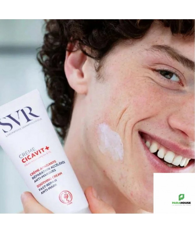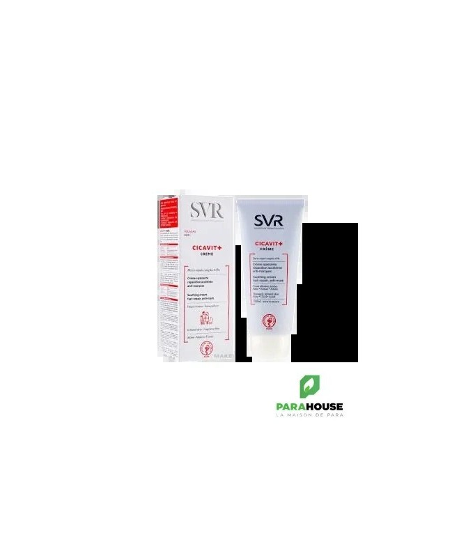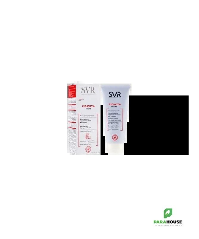 SVR CICAVIT+ Crème Apaisante Réparation Accélérée 40ML SVR Cicavit+ créme est distinée pour les peaux irritées, abimées ou fragilisées La crème Cicavit svr permet d'apaiser la peau de toute la famille des agressions entrainant irritations et inconforts, affectant aussi bien le corps que les zones fragiles du visage ou des muqueuses externes : Sécheresse, rougeurs Gerçures, écorchures Rougeurs du siège Tatouage, post-actes dermatologiques (peeling) Echauffements, coups de soleil Epilation, rasage Compositions : LAB14.21/H.32 - INGREDIENTS (CONTAINS) : AQUA (PURIFIED WATER), HYDROGENATED POLYISOBUTENE, BUTYROSPERMUM PARKII (SHEA) BUTTER, GLYCERIN, DIMETHICONOL BEHENATE, ORBIGNYA OLEIFERA SEED OIL, PROPANEDIOL, ETHYLHEXYL STEARATE, DIMETHICONE, PEG-30 DIPOLYHYDROXYSTEARATE, ALPHA-GLUCAN OLIGOSACCHARIDE, CAFFEYL GLUCOSIDE, DISODIUM ACETYL GLUCOSAMINE PHOSPHATE, GLUCOSE, RHAMNOSE, TOCOPHEROL, 1,2-HEXANEDIOL, CAPRYLYL GLYCOL, CITRIC ACID, GLUCURONIC ACID, MAGNESIUM SULFATE, PENTYLENE GLYCOL, SODIUM HYDROXIDE, XANTHAN GUM, P-ANISIC ACID. Conseils d'utlisation : Il est indiqué d'appliquer CICAVIT+ sur les zones concernées propres et sèches 2 fois par jour, jusqu’à réparation complète.