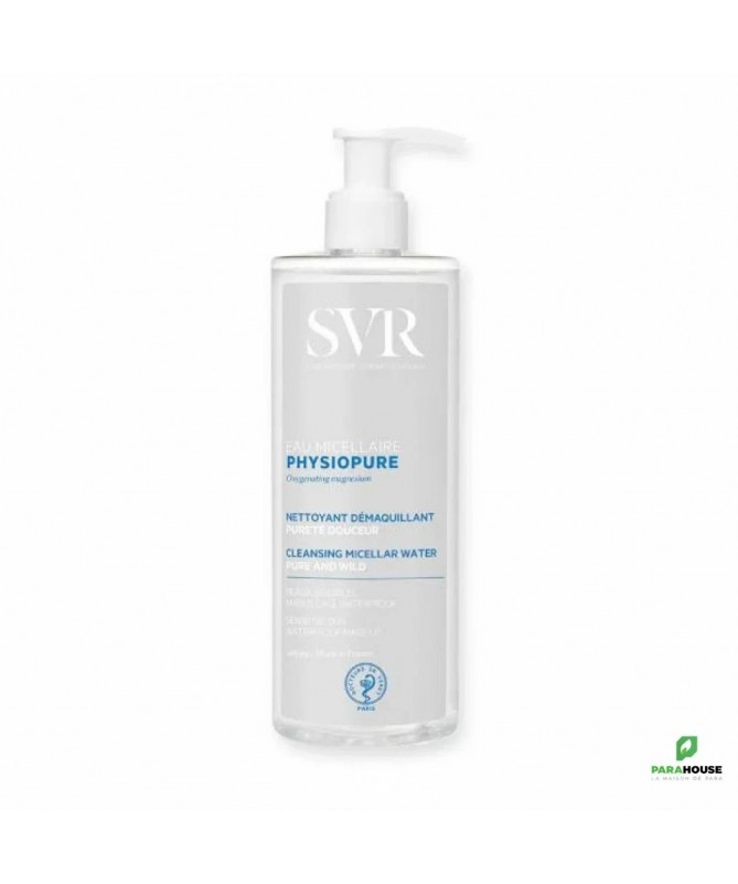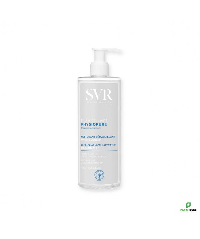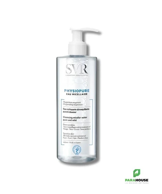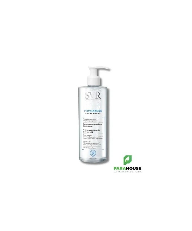 Découvrez le SVR PHYSIOPURE EAU MICELLAIRE 400ML, l'allié idéal pour le démaquillage des peaux sensibles. Formulée pour apaiser et nettoyer en douceur, cette eau micellaire élimine efficacement le maquillage et les impuretés sans agresser l'épiderme. Grâce à sa texture légère, elle laisse la peau fraîche et hydratée, tout en respectant son équilibre naturel.Conçue avec des ingrédients adaptés aux peaux réactives, la SVR PHYSIOPURE 400ML offre une tolérance optimale. En un seul geste, démaquillez votre visage et vos yeux tout en profitant d'une sensation de confort inégalée. Ce démaquillant SVR est parfait pour celles qui recherchent une solution efficace et douce pour leur routine beauté.Adoptez l'eau micellaire SVR PHYSIOPURE 400ML pour un démaquillage quotidien simplifié et une peau revitalisée. Elle est le choix parfait pour les femmes soucieuses de prendre soin de leur peau sans compromis. Ne laissez pas les impuretés s'accumuler, optez pour SVR PHYSIOPURE et révélez l'éclat naturel de votre visage.Composition :Se référer au dos du produit.100% testée sur peaux sensibles sous contrôle dermatologique et ophtalmologique.Sans paraben. Sans alcool. Sans savon. Sans colorant. pH physiologique. Parfum aux notes fleuries et marines.