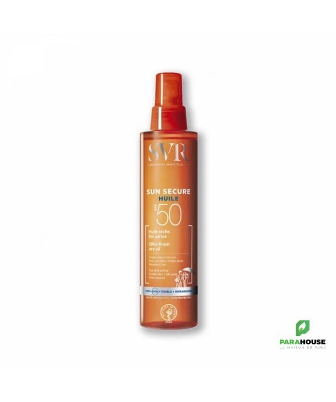 SVR SUN SECURE HUILE SPF50 200ML SUN SECURE Huile SPF50 est une huile sèche haute protection au fini satiné pour un hâle lumineux et uniforme. Formulée pour le visage et le corps des peaux sensibles, L'huile solaire svr s’applique également sur les cheveux. Sa texture huile inédite anti-dessèchement, non collante, nourrit la peau sans laisser de film gras. Utilisation plaisir grâce à sa texture satinée et son délicat parfum d’été. Résiste à l’eau, à la transpiration et aux frottements pour une protection optimale. L’association filtrante idéale qui délivre à la fois une très haute protection solaire tout en étant plus respectueuse de l’environnement marin. Les filtres suspectés d’être perturbateurs endocriniens, néfastes pour l’écosystème marin et ceux suspectés d’être irritants ont été écartés de la charte de formulation SVR. RÉSULTATS PROUVÉS : 95% Fini satiné 95% La peau n’est pas collante 95% Prévient le dessèchement cutané 86% Les cheveux sont protégés des méfaits du soleil Composition : DICAPRYLYL CARBONATE, LEPIDIUM SATIVUM SPROUT EXTRACT , TOCOPHERYL ACETATE, COCO-CAPRYLATE/CAPRATE, POLYESTER-7, NIACINAMIDE, BETA-CAROTENE, DIETHYLAMINO HYDROXYBENZOYL HEXYL BENZOATE, HOMOSALATE, ALCOHOL DENAT, PHENETHYL ALCOHOL, TOCOPHEROL DIISOPROPYL ADIPATE, ETHYLHEXYL METHOXYCINNAMATE, DICAPRYLYL ETHER, ETHYLHEXYL SALICYLATE, ETHYLHEXYL TRIAZONE, BIS-ETHYLHEXYLOXYPHENOL METHOXYPHENYL TRIAZINE, CAPRYLHYDROXAMIC ACID, DAUCUS CAROTA SATIVA (CARROT) ROOT EXTRACT, GLYCINE SOJA (SOYBEAN) OIL, HYDROGENATED PHOSPHATIDYLCHOLINE, LECITHIN, AQUA (PURIFIED WATER), CAPRYLIC/CAPRIC TRIGLYCERIDE, CAPRYLYL GLYCOL, DISODIUM EDTA, LYSOLECITHIN, NEOPENTYL GLYCOL DIHEPTANOATE, PARFUM (FRAGRANCE) EFFICACITÉ PROUVÉE SOUS CONTRÔLE DERMATOLOGIQUE 95% La peau n’est pas collante 95% Fini satiné 95% Prévient le dessèchement cutané 86% Les cheveux sont protégés des méfaits du soleil Conseils d'utilisation : Il est conseillé d'Appliquer svr huile sun secure huile sur peau mouillée ou sèche, généreusement et uniformément avant l’exposition. Renouveler fréquemment l’application. Vaporiser dans les mains avant d’appliquer sur le visage. Éviter le contact avec les yeux.