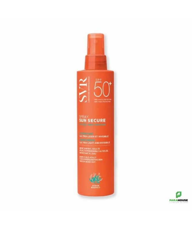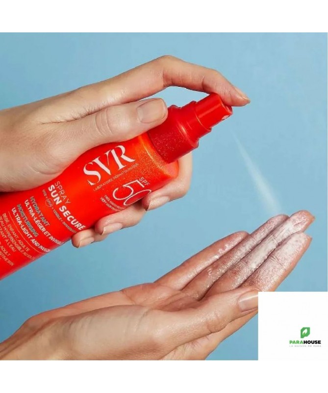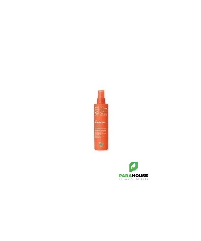 SVR SUN SECURE Spray SPF50+ 200ML Pour toutes les peaux sensibles. Dès la naissance (hors prématurés). Visage et corps. SVR SUN SECURE Spray SPF50+ offre une très haute protection dermatologique dans un lait en brume au toucher sec et au fini invisible. Le spray solaire svr permet une application express et homogène, et sa texture lactée et fine s’étale très facilement et laisse la peau hydratée et satinée. Son délicat parfum d’été donne envie d’en réappliquer encore et encore. Très résistante à l’eau et à la transpiration et aux frottements pour une protection optimale. Le plaisir d’être bien protégé FORMULÉE POUR : Toutes les peaux sensibles et les peaux hypersensibles au soleil. Bébé, enfant, adulte. Visage et corps. Efficacité approuvée sous contrôle dermatologique sans compromis sur le plaisir d’utilisation. Résistant à l’eau, résistant à la transpiration et aux frottements. EFFICACITÉ PROUVÉE SOUS CONTRÔLE DERMATOLOGIQUE: 100% Peau douce et hydratée 95% Effet frais à l’application 95% Prévient le dessèchement cutané Composition : INGREDIENTS (CONTAINS) : AQUA/WATER/EAU, HOMOSALATE, DIETHYLAMINO HYDROXYBENZOYL HEXYL BENZOATE, ETHYLHEXYL METHOXYCINNAMATE, COCO-CAPRYLATE/CAPRATE, DIISOPROPYL ADIPATE, DICAPRYLYL CARBONATE, BEHENETH-25, METHYL METHACRYLATE CROSSPOLYMER, BIS-ETHYLHEXYLOXYPHENOL METHOXYPHENYL TRIAZINE, ETHYLHEXYL TRIAZONE, PROPANEDIOL, POLYMETHYL METHACRYLATE, NIACINAMIDE, SILICA, AMINOMETHYL PROPANOL, BETA-CAROTENE, BETA-SITOSTEROL, DAUCUS CAROTA SATIVA (CARROT) ROOT EXTRACT, GLYCINE SOJA (SOYBEAN) OIL, HYDROGENATED PHOSPHATIDYLCHOLINE, LECITHIN, LEPIDIUM SATIVUM SPROUT EXTRACT, SQUALENE, GLYCERIN, PHYTIC ACID, TOCOPHEROL, TOCOPHERYL ACETATE, 1,2-HEXANEDIOL, CAPRYLYL GLYCOL, CELLULOSE GUM, CETEARYL ALCOHOL, CITRIC ACID, HYDROXYETHYL ACRYLATE/SODIUM ACRYLOYLDIMETHYL TAURATE COPOLYMER, LYSOLECITHIN, MICROCRYSTALLINE CELLULOSE, NEOPENTYL GLYCOL DIHEPTANOATE, PENTYLENE GLYCOL, POLYESTER-7, POLYSORBATE 60, SODIUM LAURETH SULFATE, SORBITAN ISOSTEARATE, COCO-GLUCOSIDE, PHENOXYETHANOL, POTASSIUM SORBATE, SODIUM BENZOATE, PARFUM (FRAGRANCE) Conseils d'utilisation: Il est indiqué d'appliquer SVR SUN SECURE Spray matin et avant chaque exposition sur le visage et le corps. Renouveler fréquemment lors d’exposition prolongée.