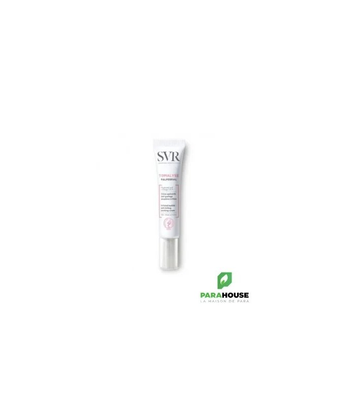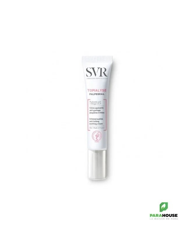 SVR TOPIALYSE PALPEBRAL CREME Crème apaisante anti-grattage paupières irritées SVR TOPIALYSE PALPEBRAL CREME PAUPIERES IRRITEES permet d'apaise et de diminuer les sensations de grattage des yeux tout en protègeant des agressions extérieures grâce à un effet barrière. OPIALYSE PALPEBRAL CREME PAUPIERES IRRITEES : Apaise les irritations et les sensations de grattage Réduit les rougeurs et limite l’apparition des irritations Hydrate et relipide pour restaurer la barrière cutanée Protège des agressions extérieures NB: Hypoallergénique Sans parfum - Sans paraben Composition : LAB18.24/A.06 - INGREDIENTS: AQUA/WATER/EAU, PROPANEDIOL, HYDROGENATED POLYDECENE, C15-19 ALKANE, ORBIGNYA OLEIFERA SEED OIL, POLYACRYLAMIDE, BEHENYL ALCOHOL, CAPRYLIC/CAPRIC TRIGLYCERIDE, DIPOTASSIUM GLYCYRRHIZATE, SACCHARIDE ISOMERATE, SODIUM HYALURONATE, TOCOPHERYL ACETATE, 1,2-HEXANEDIOL, C13-14 ISOPARAFFIN, CAPRYLYL GLYCOL, CETEARETH-20, CITRIC ACID, GOSSYPIUM HERBACEUM (COTTON) SEED OIL, LAURETH-7, PENTYLENE GLYCOL, SODIUM CITRATE, SODIUM POLYACRYLATE STARCH Conseils d'utilisation : Nettoyez votre paupière au sérum physiologique avant d'appliquez Topialyse Palpébral. Sur peaux sensibles et polly-allergiques, convient aux porteurs de lentilles SANS PARFUM & HYPOALLERGENIQUE POUR TOUTE LA FAMILLE Dès 3 ans