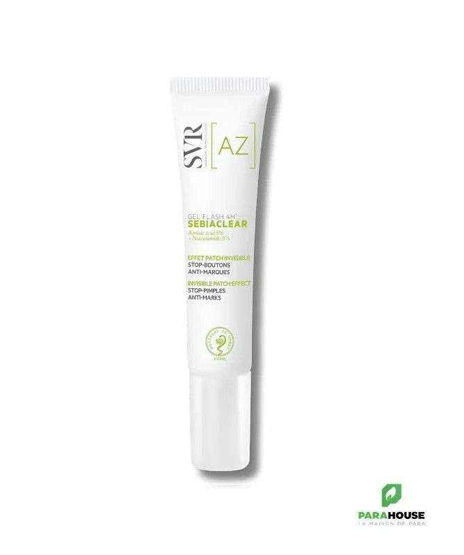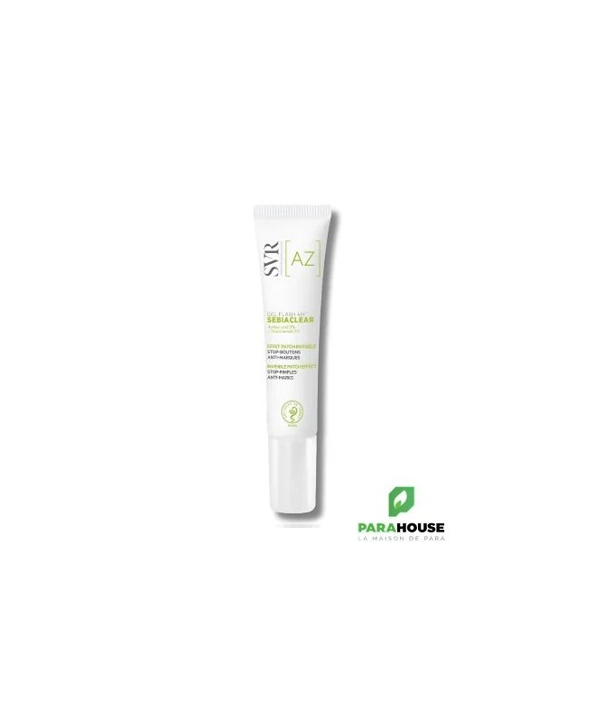SVR SEBIACLEAR GEL FLASH 4H 15ML - Peaux à tendance acnéique SVR SEBIACLEAR GEL FLASH 4H est un gel effet patch localisé invisible contenant 5% d’acide azélaïque et 5% de niacinamide, efficace contre les imperfections dès 4H1, pour les peaux mixtes à grasses, même sensibles. Sebiaclear Gel Flash 4H réduit les imperfections, les rougeurs et prévient l’apparition de marques post-boutons. Sa technologie en gel effet patch forme un film occlusif invisible pour protéger la peau des agressions et du grattage. Format nomade pour faciliter la réapplication au quotidien. FORMULÉ POUR : Les imperfections localisées, les peaux à tendance acnéique, même sensibles. Acné légère à sévère. ENFANTS DÈS 10 ANS, ADULTES : Convient aux femmes enceintes et allaitantes. TEXTURE GEL EFFET PATCH INVISIBLE : Technologie gel effet patch protecteur. Ne peluche pas, compatible avec le maquillage. TESTÉ SOUS CONTRÔLE DERMATOLOGIQUE : Sur peaux sensibles. TESTÉ PERTURBATEURS ENDOCRINIENS : Testé sur les mécanismes endocriniens oestrogéniques, androgéniques et thyroïdiens. Tests réalisés par un laboratoire indépendant, expert de la perturbation endocrinienne. RÉSULTATS PROUVÉS DÈS 4H -31% de rougeurs 100% réduit le volume des imperfections cutanées 100% absorbe l’excès de sébum DÈS 4 JOURS 92% le bouton a totalement disparu, sans laisser de marques 92% je me sens moins gênée par la présence de mes boutons 100% le patch liquide est moins visible qu’un patch solide conventionnel Composition : LAB23.28/D.21 - INGREDIENTS : AQUA/WATER/EAU, ISOPROPYL ALCOHOL, AZELAIC ACID, HYDROXYPROPYL STARCH, NIACINAMIDE, PROPANEDIOL, GLYCERIN, SODIUM CARBOXYMETHYL STARCH, PENTYLENE GLYCOL, SALICYLIC ACID, SODIUM HYDROXIDE, 1,2-HEXANEDIOL, CAPRYLYL GLYCOL, SPHINGOMONAS FERMENT EXTRACT, PARFUM/FRAGRANCE, SODIUM PHYTATE. Conseils d'utilisation : Apppliquez deux fois par jour Sur une peau propre et sèche. Seul ou en complément de votre routine quotidienne. Format nomade pratique pour la réapplication.