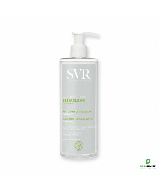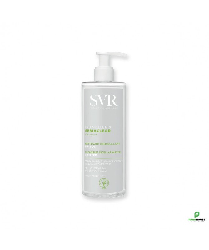 Découvrez l'**SVR SEBIACLEAR EAU MICELLAIRE 400ML**, votre alliée idéale pour une peau grasse et sujette aux imperfections. Spécialement formulée pour répondre aux besoins des peaux à tendance acnéique, cette eau micellaire purifie et démaquille en douceur tout en préservant l'équilibre de votre épiderme. Grâce à sa texture légère et agréable, elle élimine efficacement le maquillage, les impuretés et l'excès de sébum sans agresser la peau.Enrichie en actifs ciblés, l'**eau micellaire SVR Sebiaclear** agit comme un véritable démaquillant anti-imperfections, laissant votre peau nette et fraîche. Son efficacité est prouvée : elle réduit visiblement les imperfections tout en apaisant les irritations. Parfaite pour un usage quotidien, elle s'intègre facilement dans votre routine de soins.Faites le choix d'une peau éclatante et saine avec l'**eau micellaire SVR Sebiaclear**. Optez pour un démaquillage doux et efficace qui respecte votre peau tout en luttant contre les imperfections. Offrez à votre visage la pureté qu'il mérite !Ingrédients actifs :Agents micellaires, apaisants et purifiants, adaptés aux peaux mixtes à grasses.