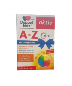 Dans le produit AZ de Doppelherz, les minéraux calcium et magnésium ainsi que les oligo-éléments fer, zinc, cuivre, sélénium, chrome, molybdène l'iode sont judicieusement combinés.